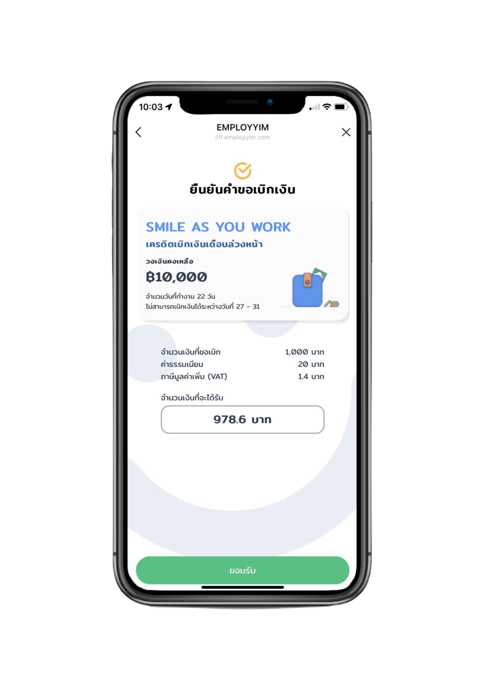 เทคโนโลยีทางการเงินสำหรับองค์กรเพือช่วยเหลือและแก้ปัญหาทางด้านการเงินให้กับพนักงานในองค์กรของคุณ โดยมีเป้าหมายหลักในการให้บริการเบิกเงินเดือนล่วงหน้า แอปพลิเคชันที่จะช่วยให้พนักงานเลือกรับเงินเดือนได้ทันทีโดยไม่ต้องรอสิ้นเดือน